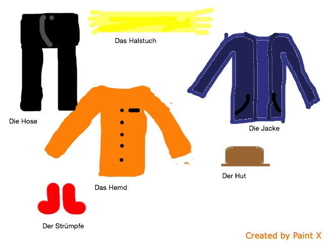 Ole hat auch eine schwarze Hose und die Strümpfe sind rot.
